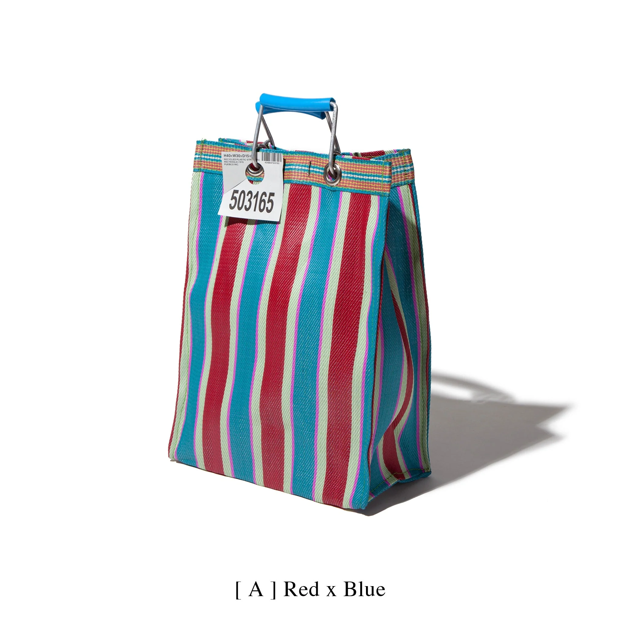 PUEBCO’s Recycled Plastic Stripe Bag Rectangle / D15 is made from recycled plastic with an aluminum frame—ideal for shopping, work, or leisure. Available in six bold color combinations, each bag brings function and character together in a compact and convenient shape.