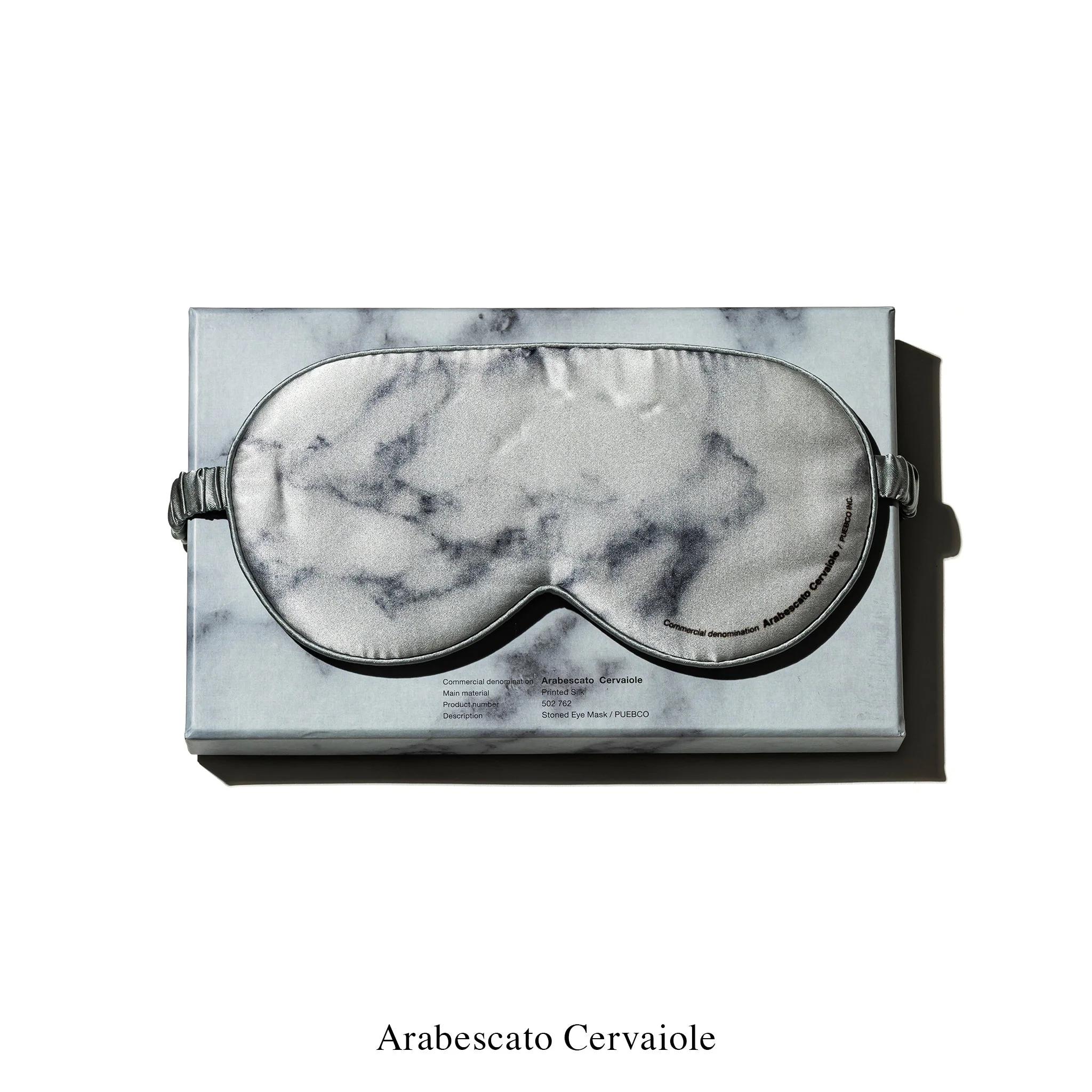 PUEBCO’s Stoned Eye Mask features a silk front and back, with polyester piping, strap, and filling. Each version is named after a type of marble, bringing a refined and elegant touch to a simple accessory. Soft, lightweight, and functional—it’s perfect for sleeping, relaxing, or traveling.